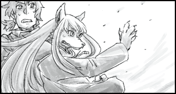 彼はガクガクと膝が笑って、その顔は恐怖と戦慄で真っ青だった。だが、それでも彼は保護者らしく、ウカノの前に出て背で