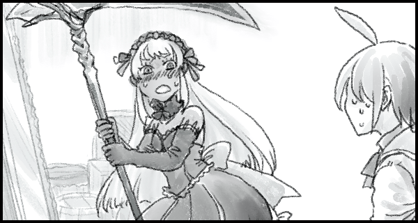 その視線の先で、鏡に向かってドロテアは大きすぎる鎌を構えて見栄を切った。