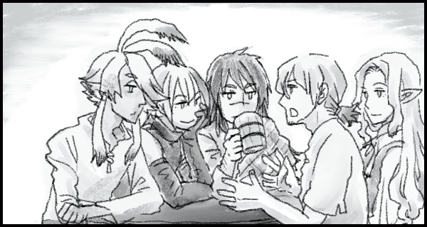 一気ににぎやかになって、カラブローネはしめたとばかりににんまり笑う。席を薦められて座るのは、エイダード、ヒロ、ヴィラール、そしてザッシュだ。