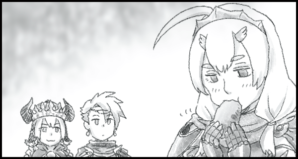 「あら、さすがの英雄さんも降参のようね。ほら、お食べなさい? 海の一族に伝わる秘伝の携行食品、塩パンよ」